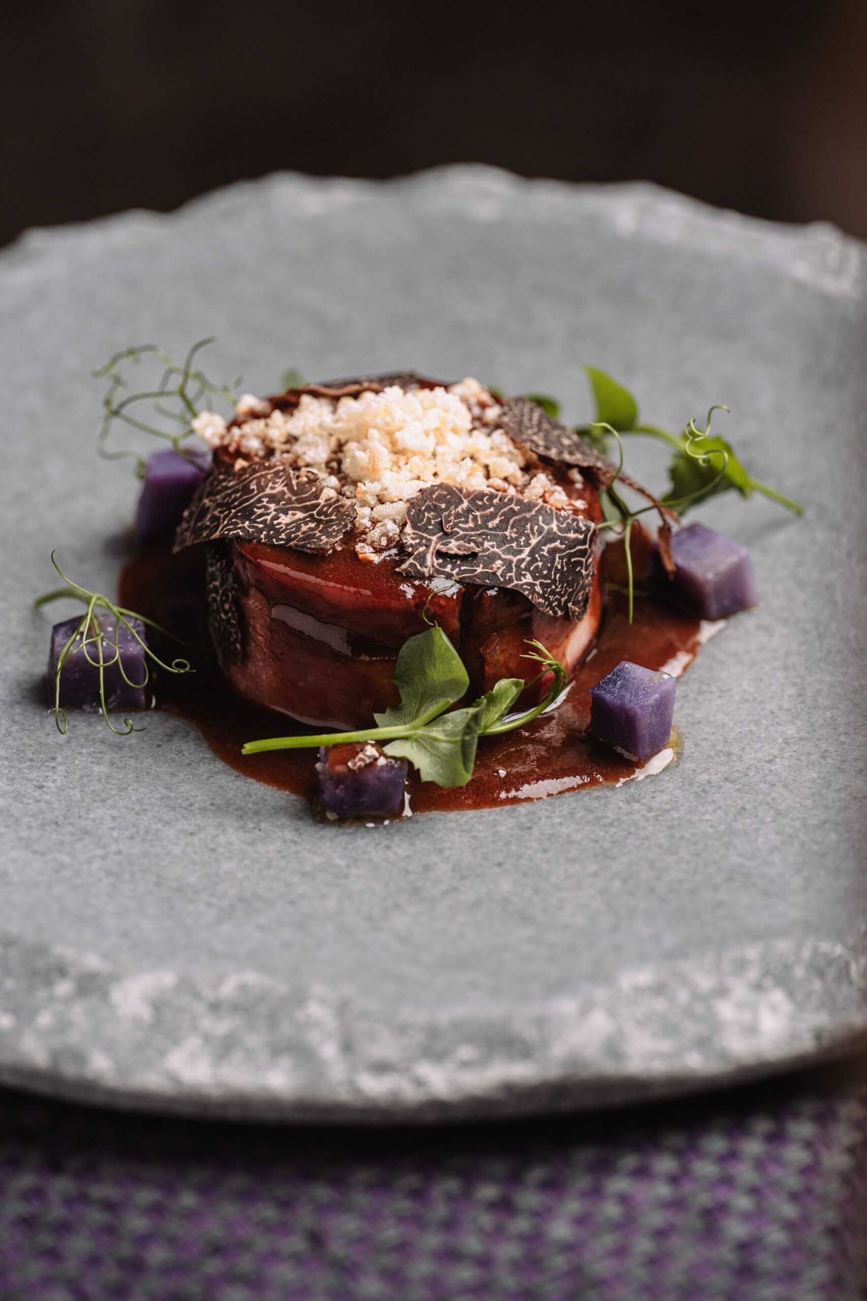 También acaba de lanzar una línea propia de jereces en colaboración con varias bodegas de la zona. “Tenemos un amontillado de Maestro Sierra, un Palo Cortado de Cayetano del Pino y también un oloroso especial para cocina”, comenta. “El Amontillado para mí es el vino más agradecido para cocinar y disfrutar, porque aúna la finura y la elegancia de la crianza biológica y la complejidad de la oxidativa. Representa muy bien a los vinos de Jerez porque llega a un público más amplio al ser más amable que un oloroso, pero está lleno de matices”.
