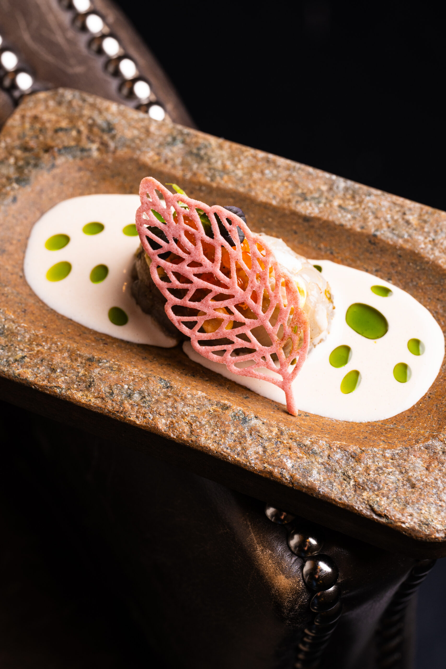 “Intentamos exprimir al máximo nuestro entorno y elaborar una cocina sostenible. Añadimos velo de flor a la masa madre a diario del pan que elaboramos. También utilizamos antiguas botas de vino y cepas de albariza. Las llevamos a un carpintero y con ese serrín ahumamos muchos de nuestros platos”, comenta el chef gaditano.